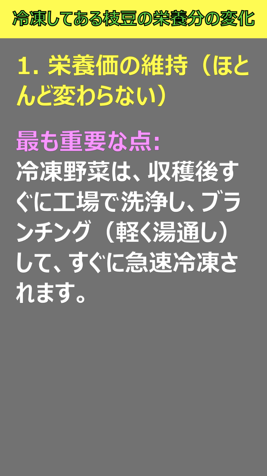 冷凍してある枝豆の栄養分の変化