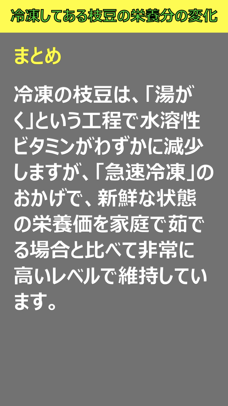 冷凍してある枝豆の栄養分の変化