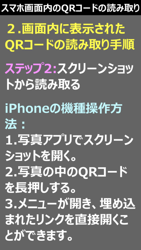 スマートフォン画面内のQRコード読み取り方法(要点まとめ)