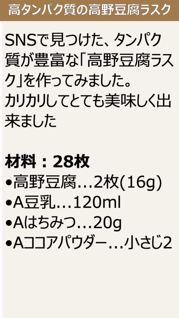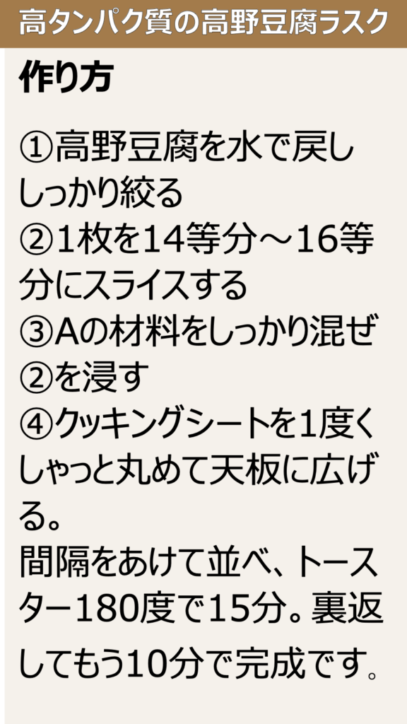 高タンパク質の高野豆腐ラスク:記事