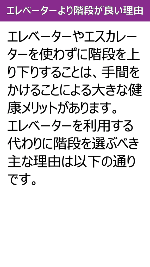 エレベーターより階段が良い理由:資料
