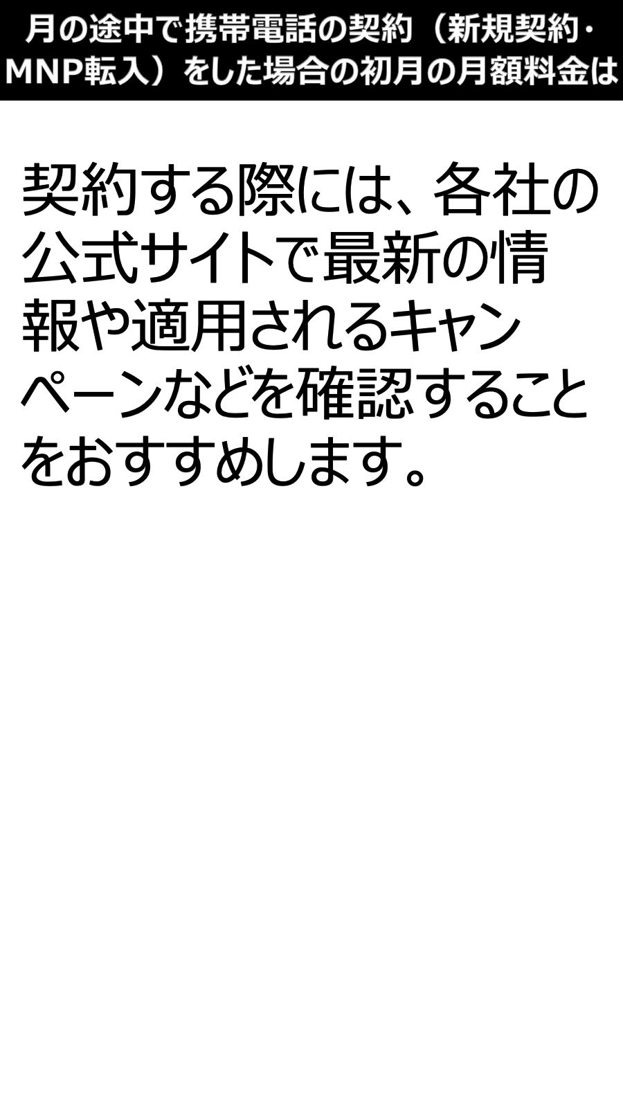 月の途中で携帯電話の契約(新規契約・MNP転入)をした場合の初月の月額料金は