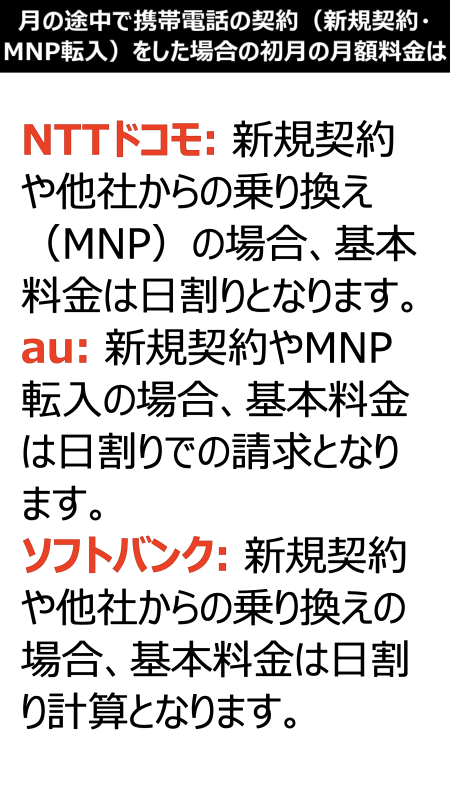 月の途中で携帯電話の契約(新規契約・MNP転入)をした場合の初月の月額料金は