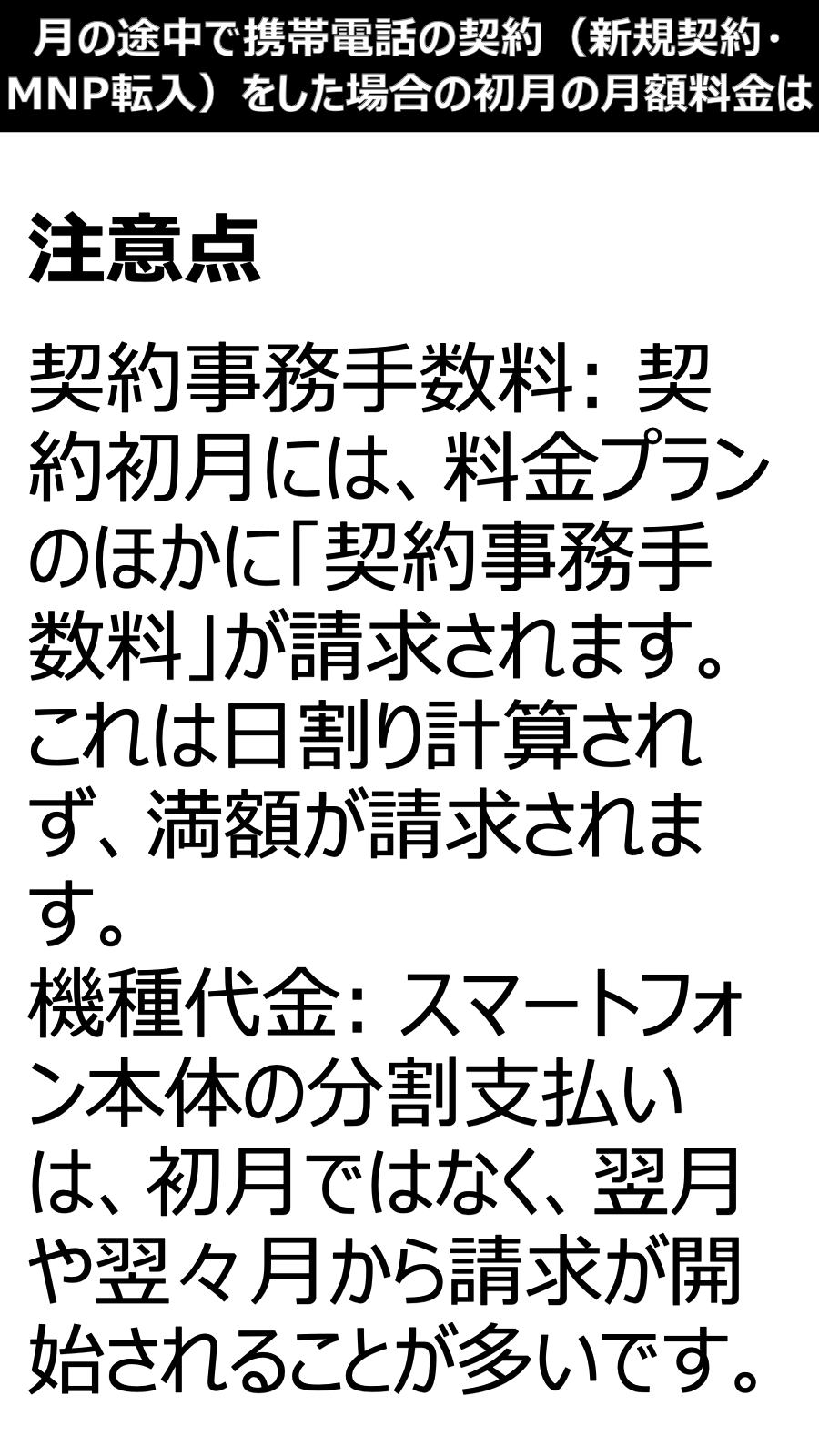 月の途中で携帯電話の契約(新規契約・MNP転入)をした場合の初月の月額料金は