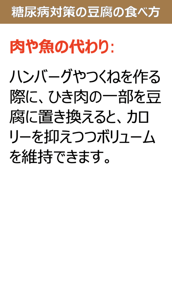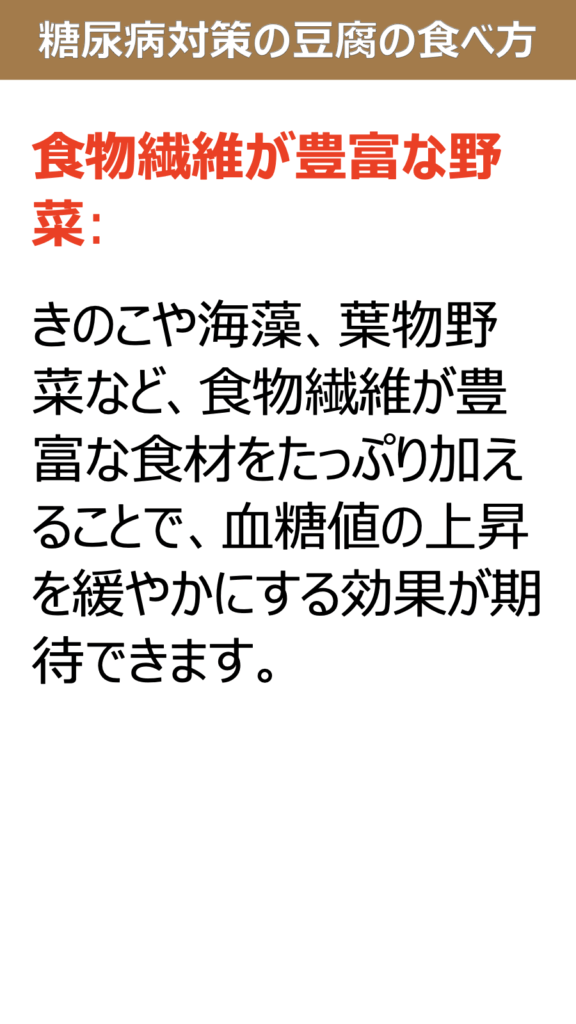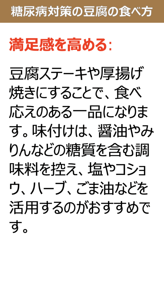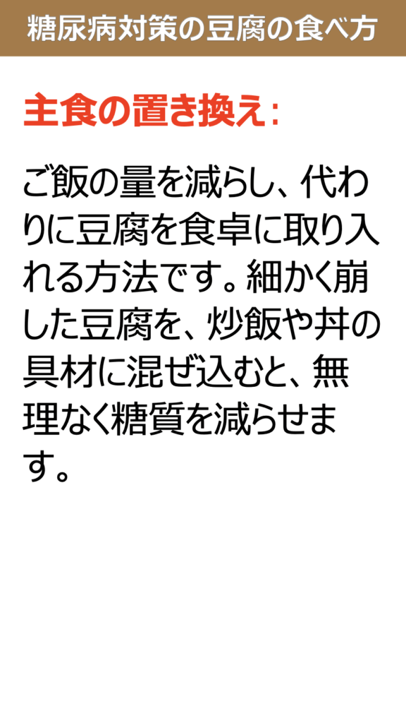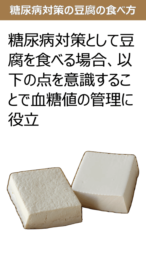 糖尿病対策として豆腐を食べる場合、以下の点を意識することで血糖値の管理に役立てます