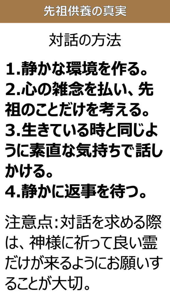 注意点:対話を求める際は、神様に祈って良い霊だけが来るようにお願いすることが大切。