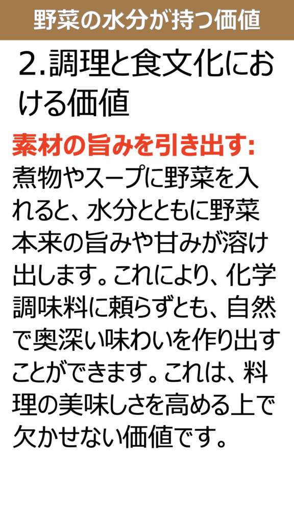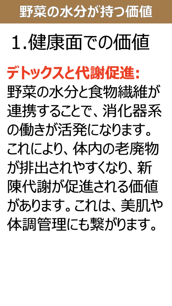野菜の水分が持つ価値について、改めて詳しくご説明します。