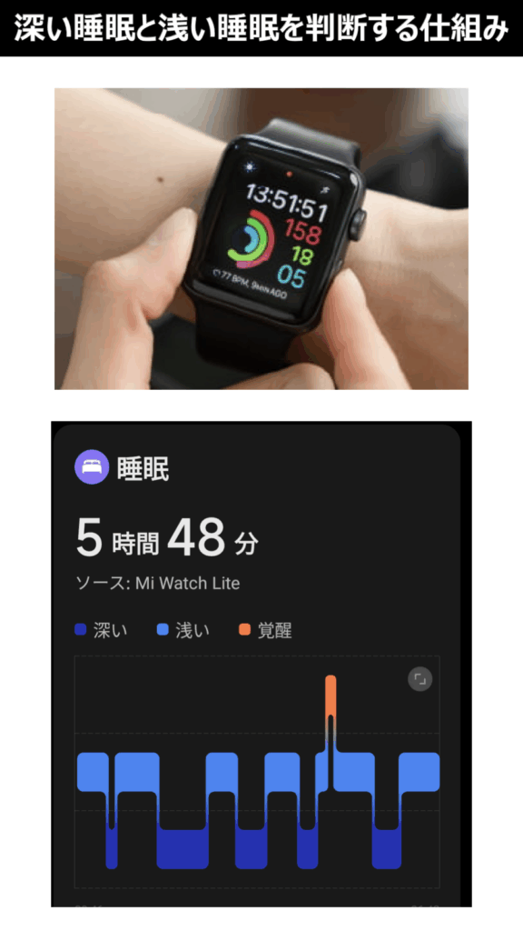 スマートウォッチの 深い睡眠と浅い睡眠はどんなデータで判断してるのでしょうか