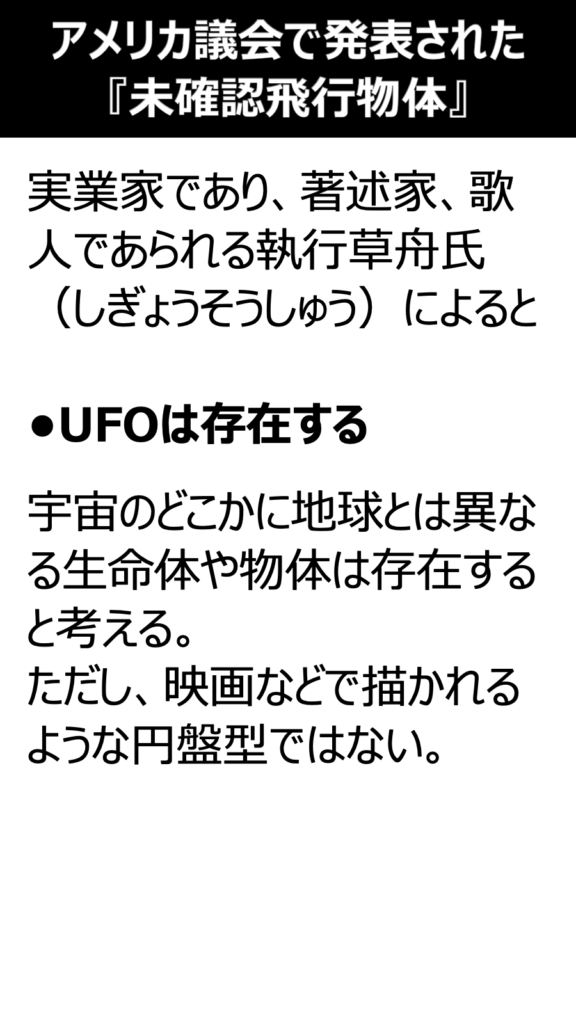アメリカ議会で発表された未確認飛行物体