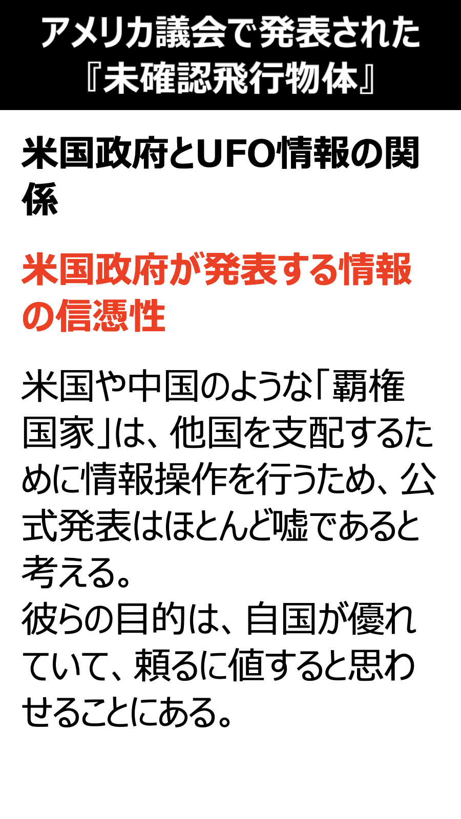 アメリカ議会で発表された未確認飛行物体