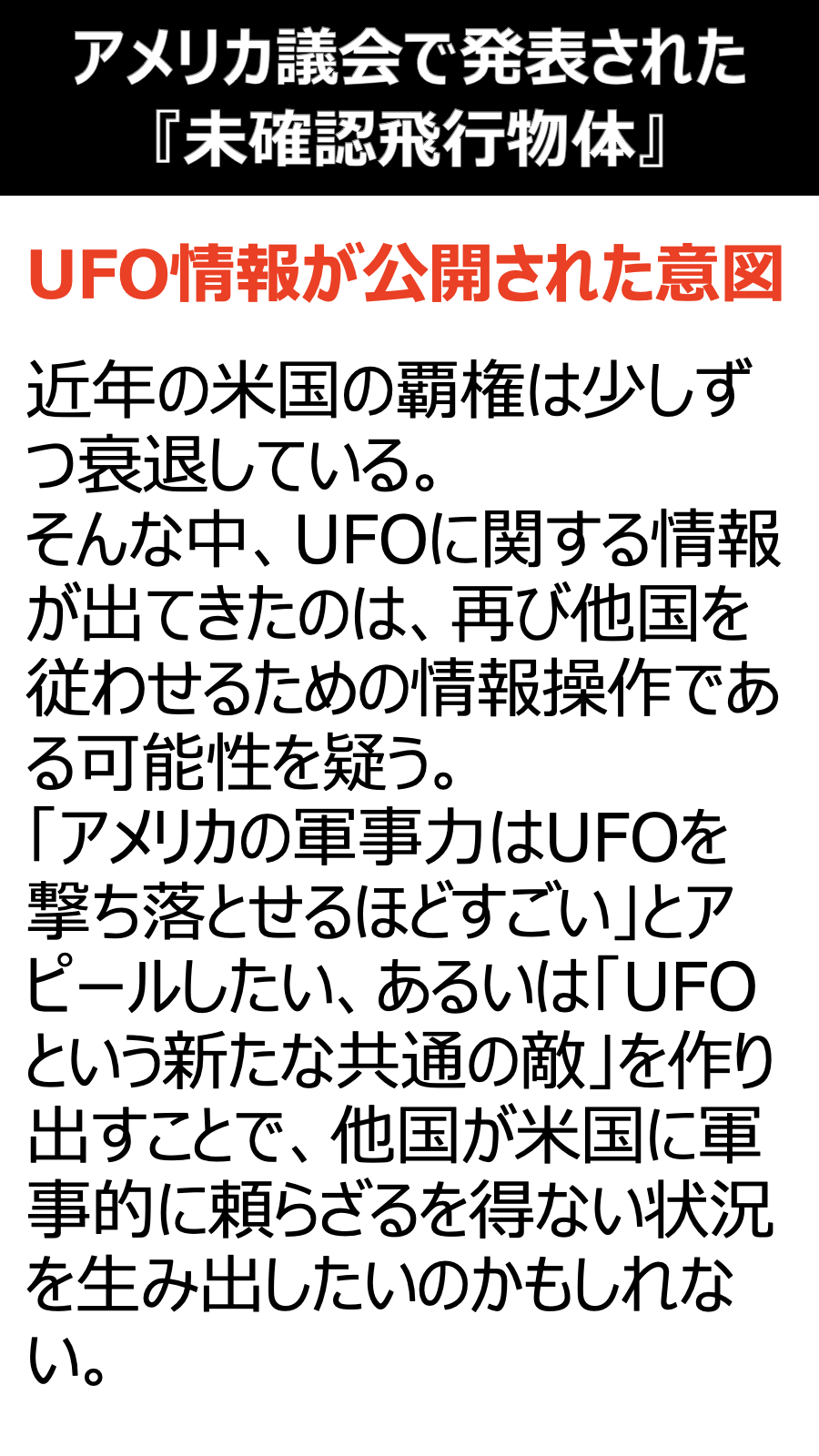 アメリカ議会で発表された未確認飛行物体