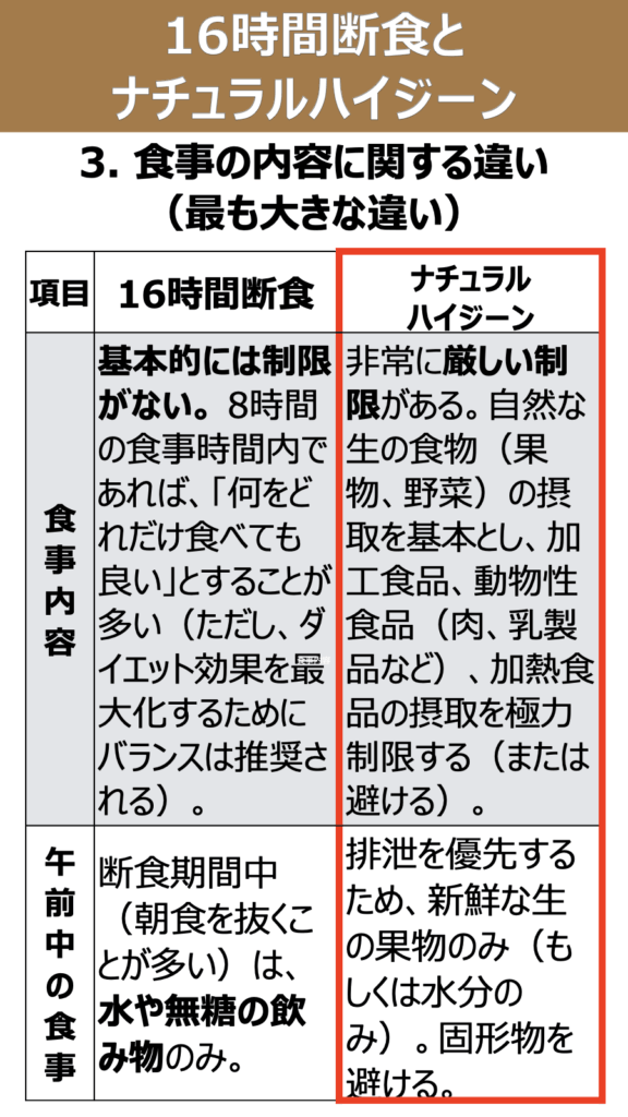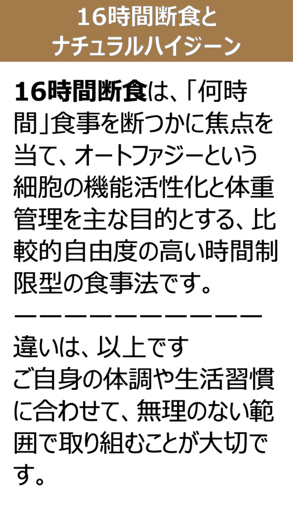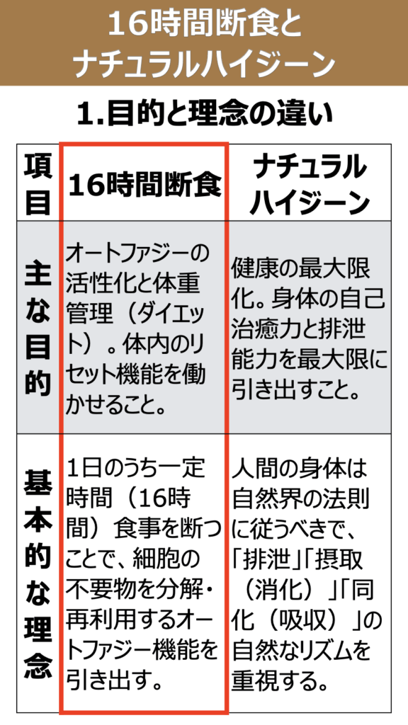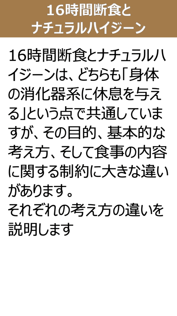 16時間断食とナチュラルハイジーンの違いについて