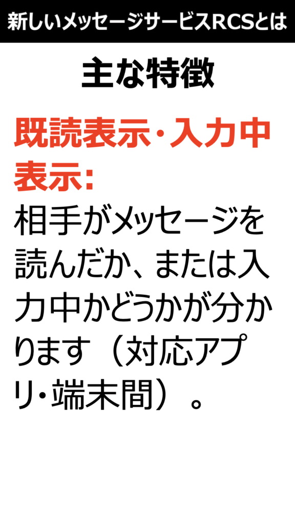*既読表示・入力中表示:相手がメッセージを読んだか、または入力中かどうかが分かります(対応アプリ・端末間)。