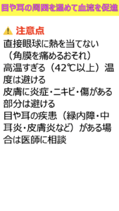 目や耳の周囲を温めて血流を促進.013