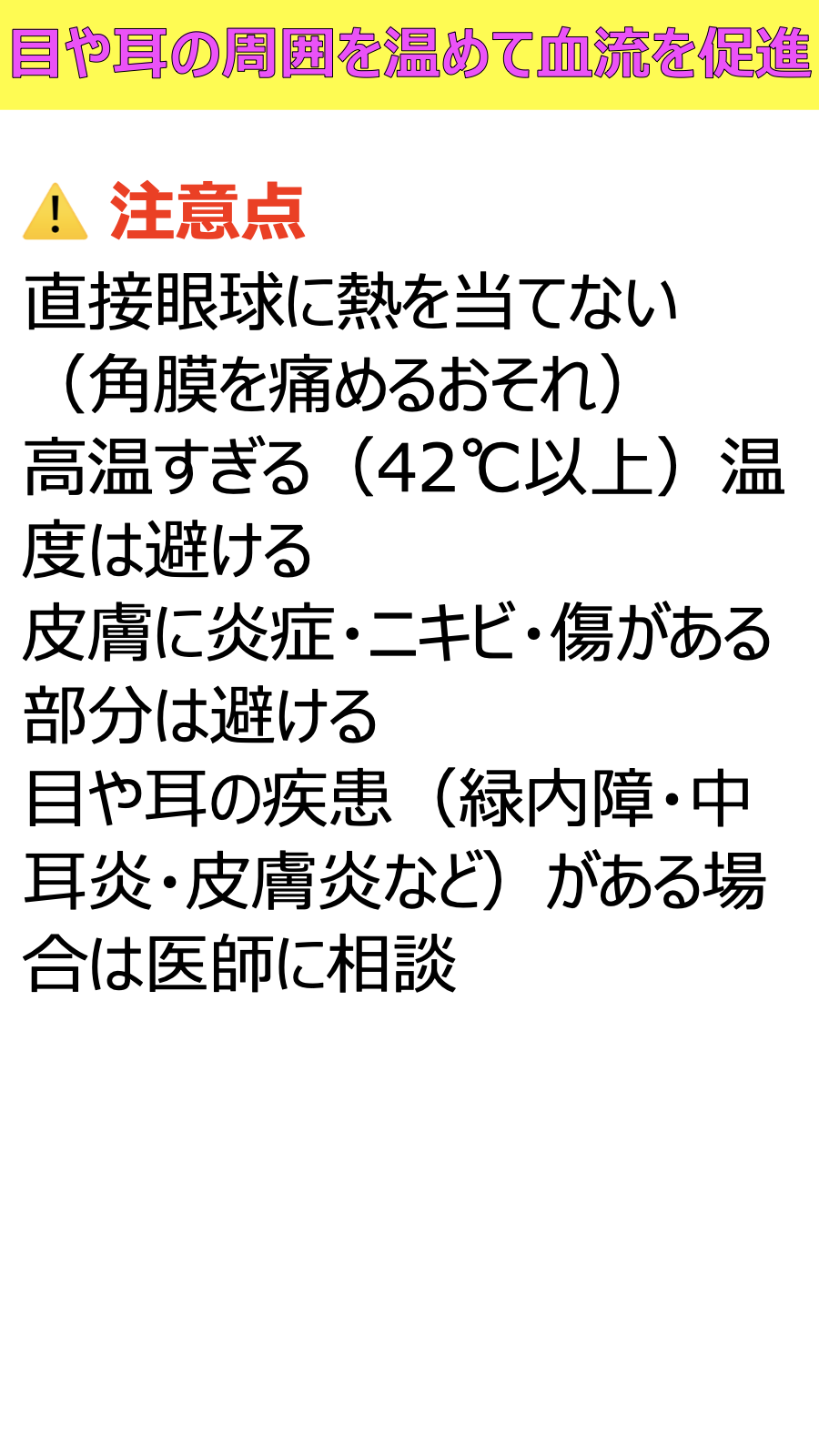 目や耳の周囲を温めて血流を促進