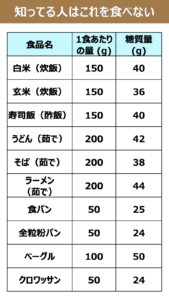 GI値の高い食品と1食あたりのGL値