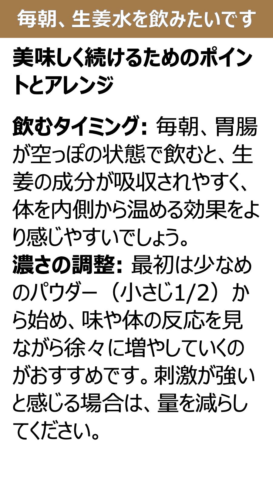 毎朝、生姜水を飲みたいです
