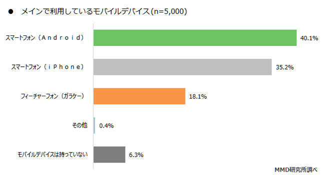MMD研究所(東京都港区、代表取締役:吉本浩司)は15歳~69歳の男女5,000人を対象に2018年7月31日~8月1日の期間で「2018年8月 モバイルデバイスシェア調査」より