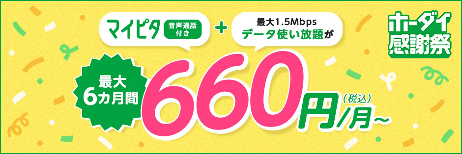 マイピタ+データ使い放題が6カ月間 660円/月