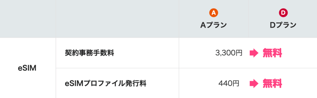 eSIMの新規申し込み時の契約変更時の事務手数料3,300円とeSIMプロファイル発行料330円が無料になるのは嬉しいです