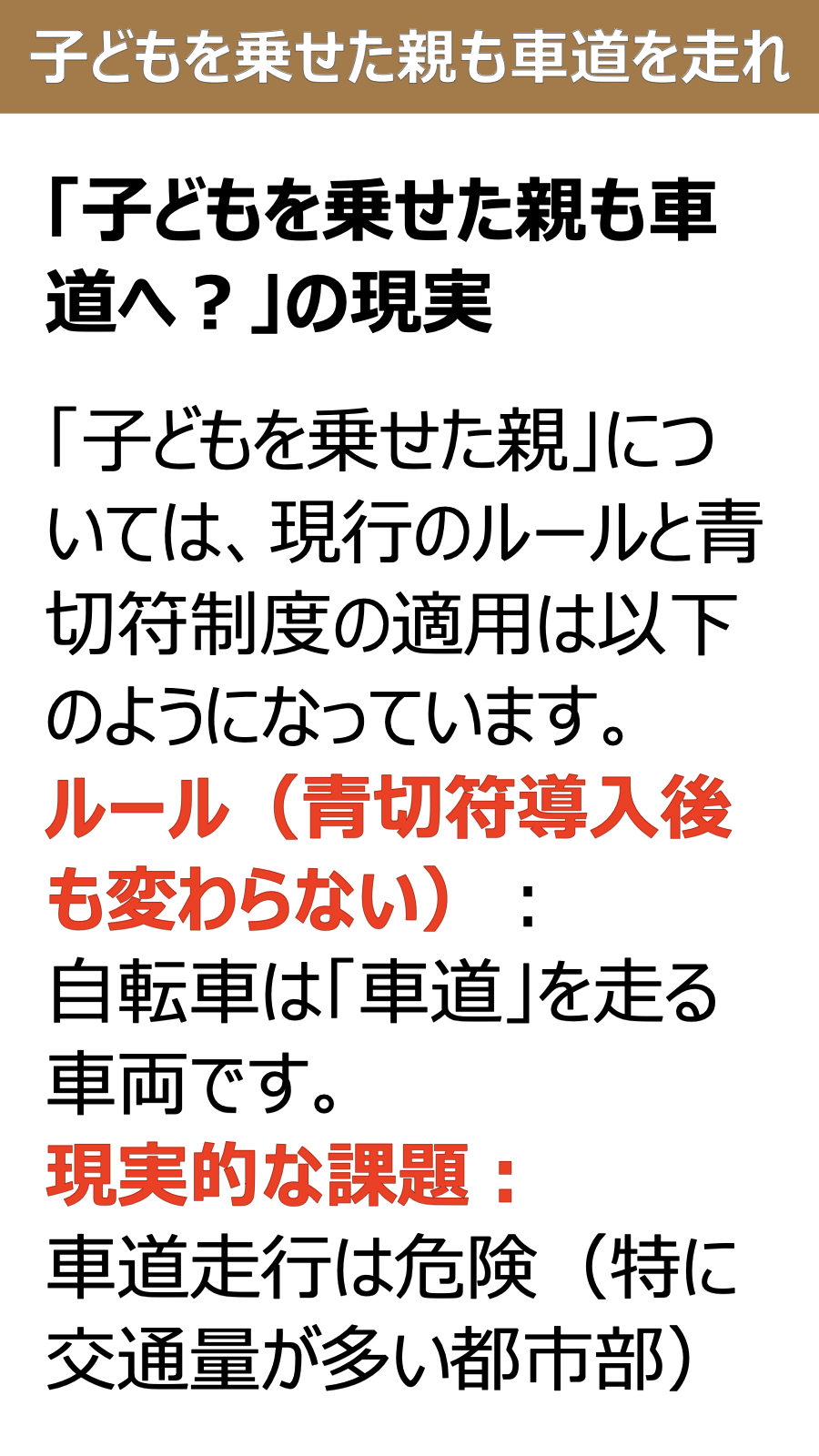 子どもを乗せた親も車道を走れ?