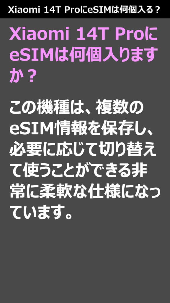 Xiaomi 14T ProにeSIMは何個入りますか?