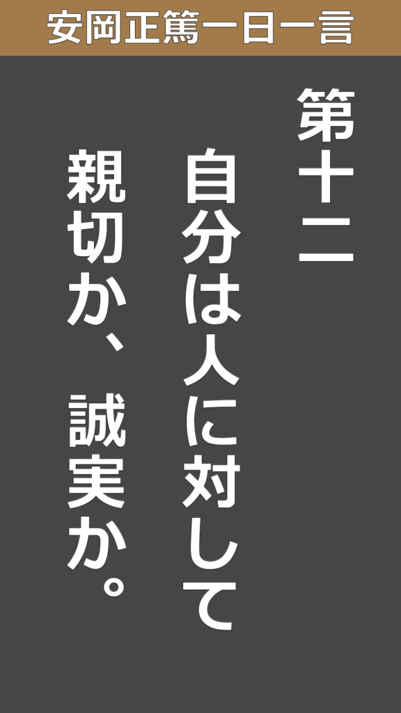 第十二、自分は人に対して親切か、誠実か。