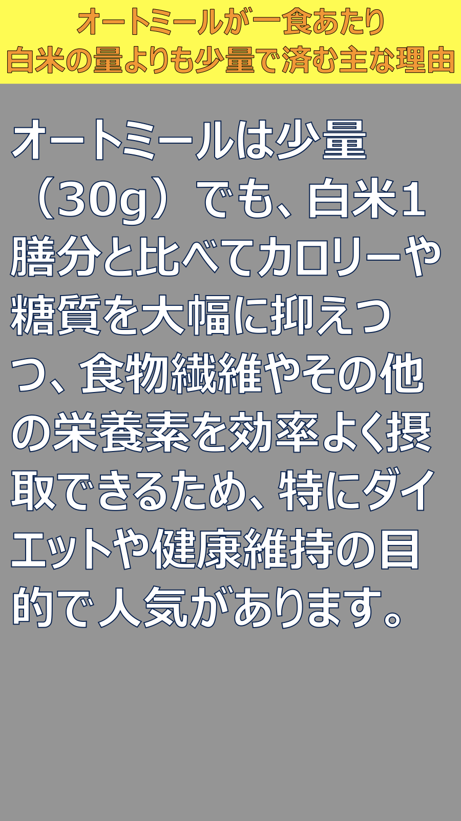 オートミールが一食あたり、白米の量よりも少量で済む主な理由.007
