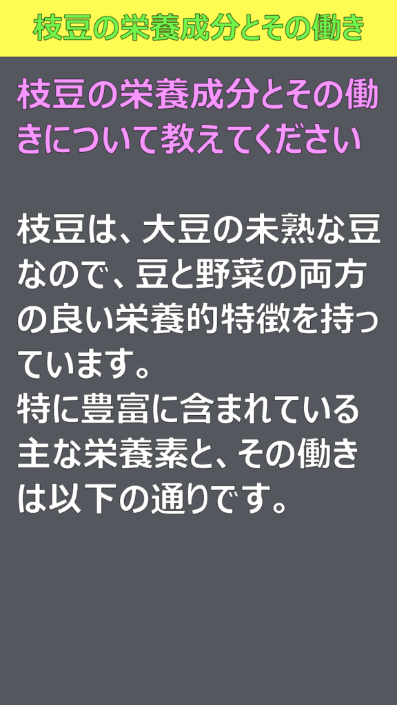 枝豆の栄養とその働き:資料