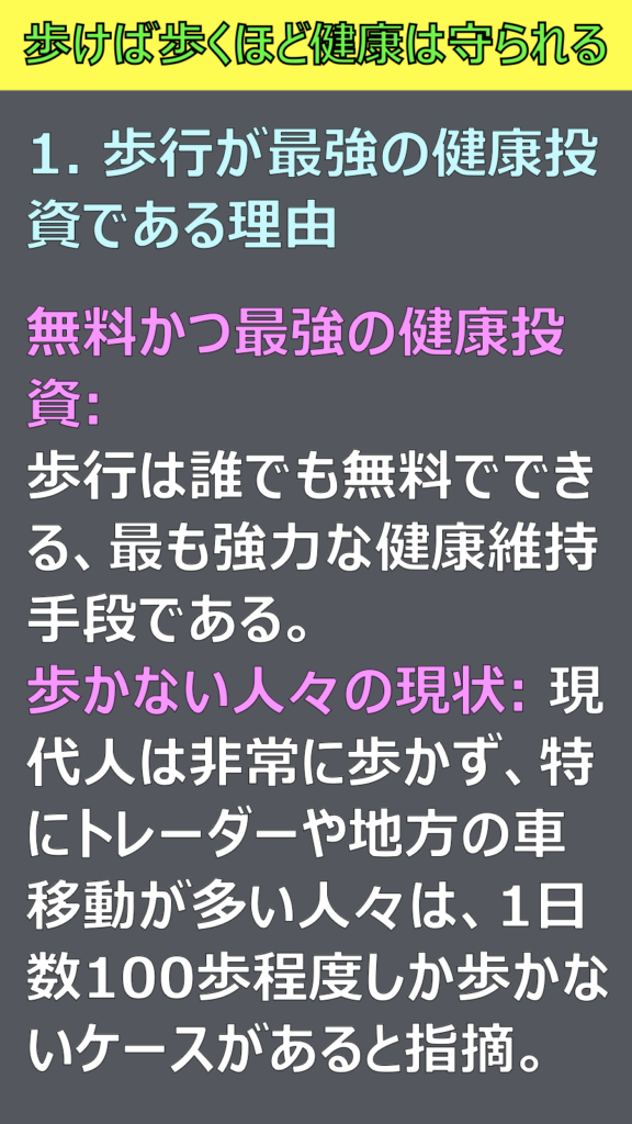 ### 1. 🚶♂️ 歩行が最強の健康投資である理由