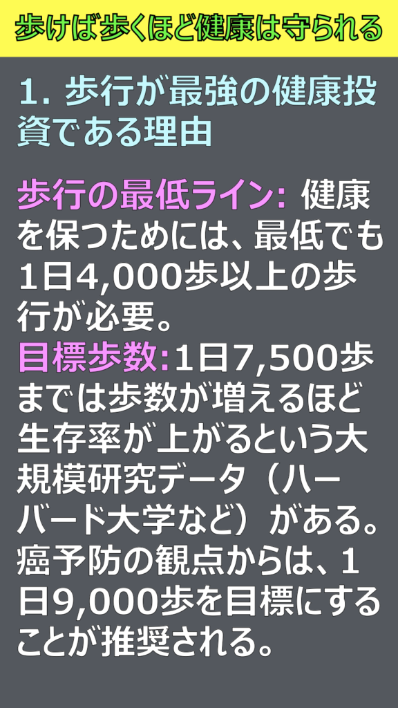## 🏃♂️「歩けば歩くほど健康は守られる」
