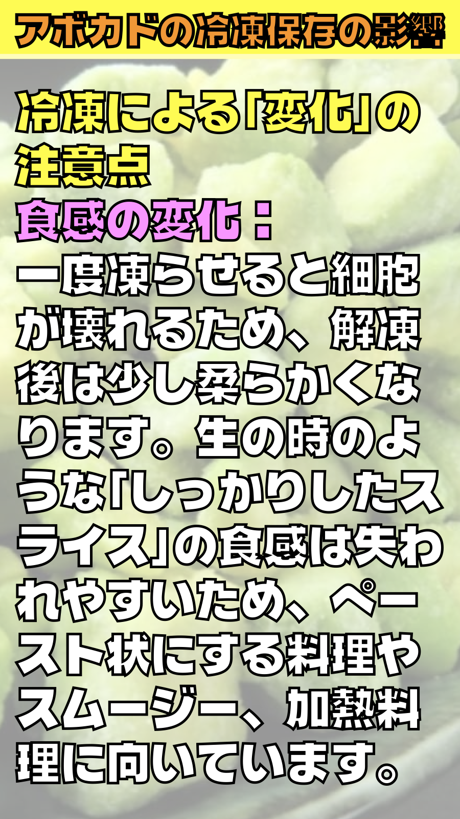 アボカドの冷凍保存の影響