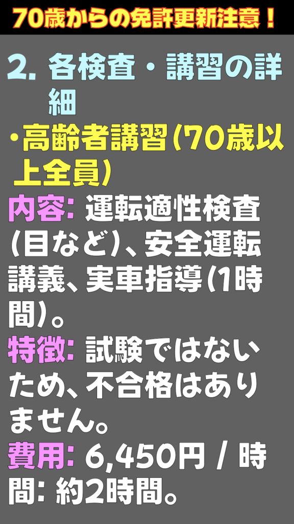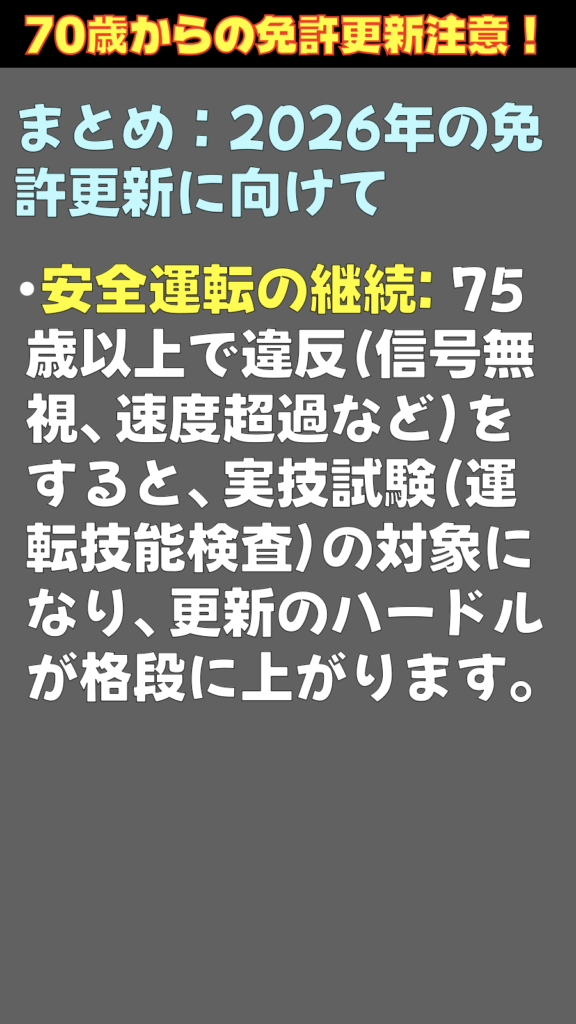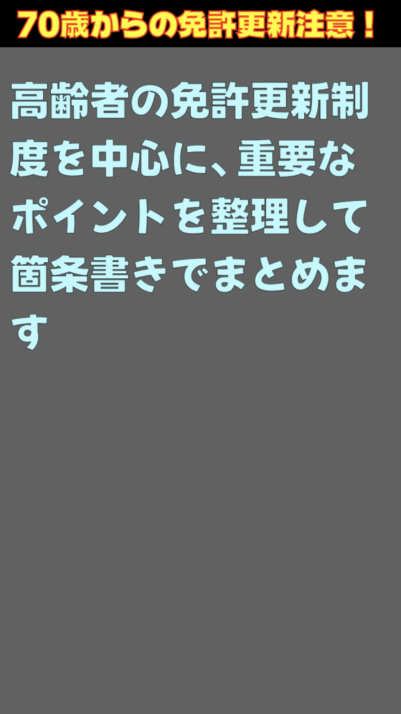 高齢者の免許更新制度を中心に、重要なポイントを整理して箇条書きでまとめます