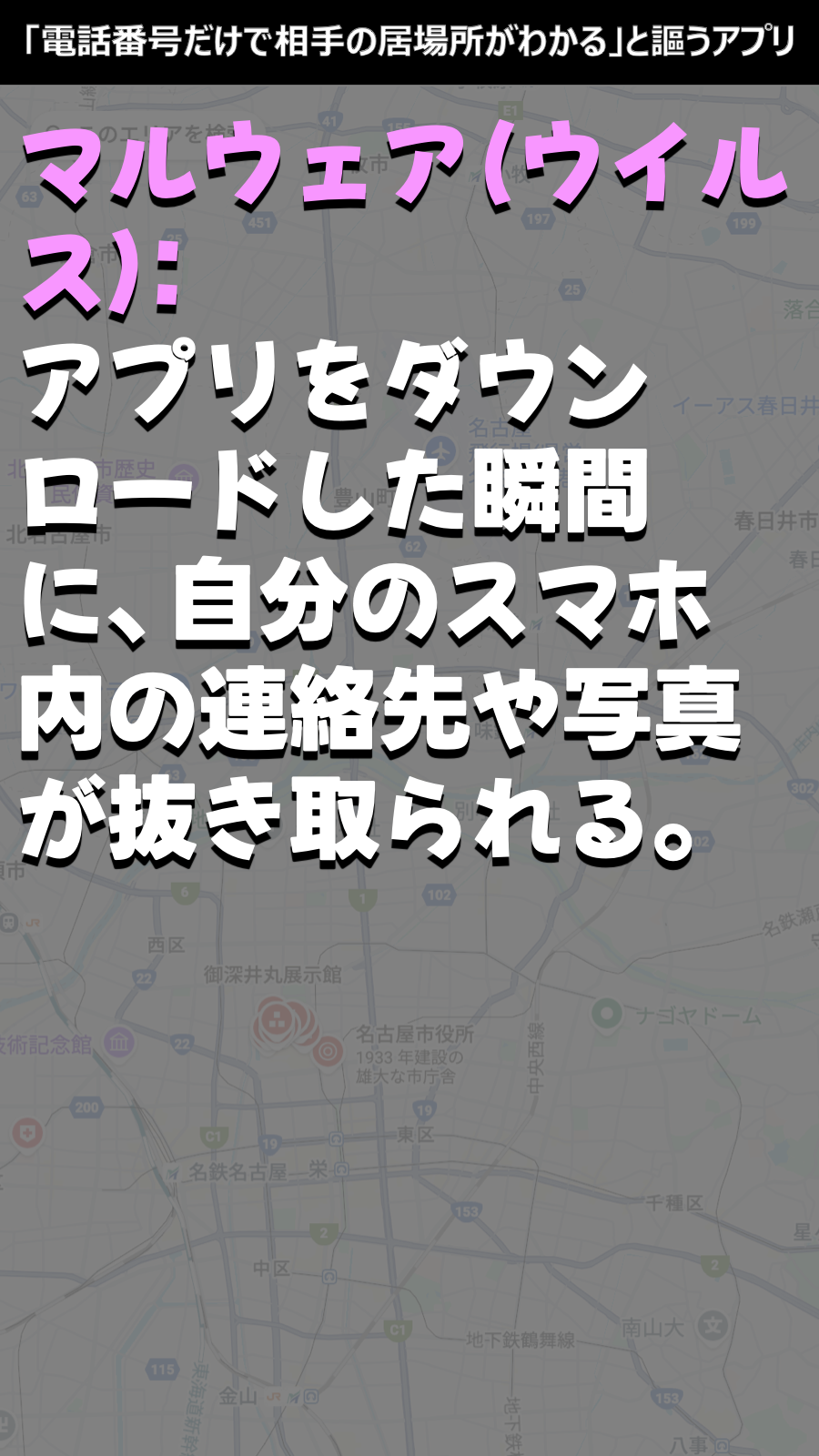 「電話番号だけで相手の居場所がわかる」と謳うアプリ.012