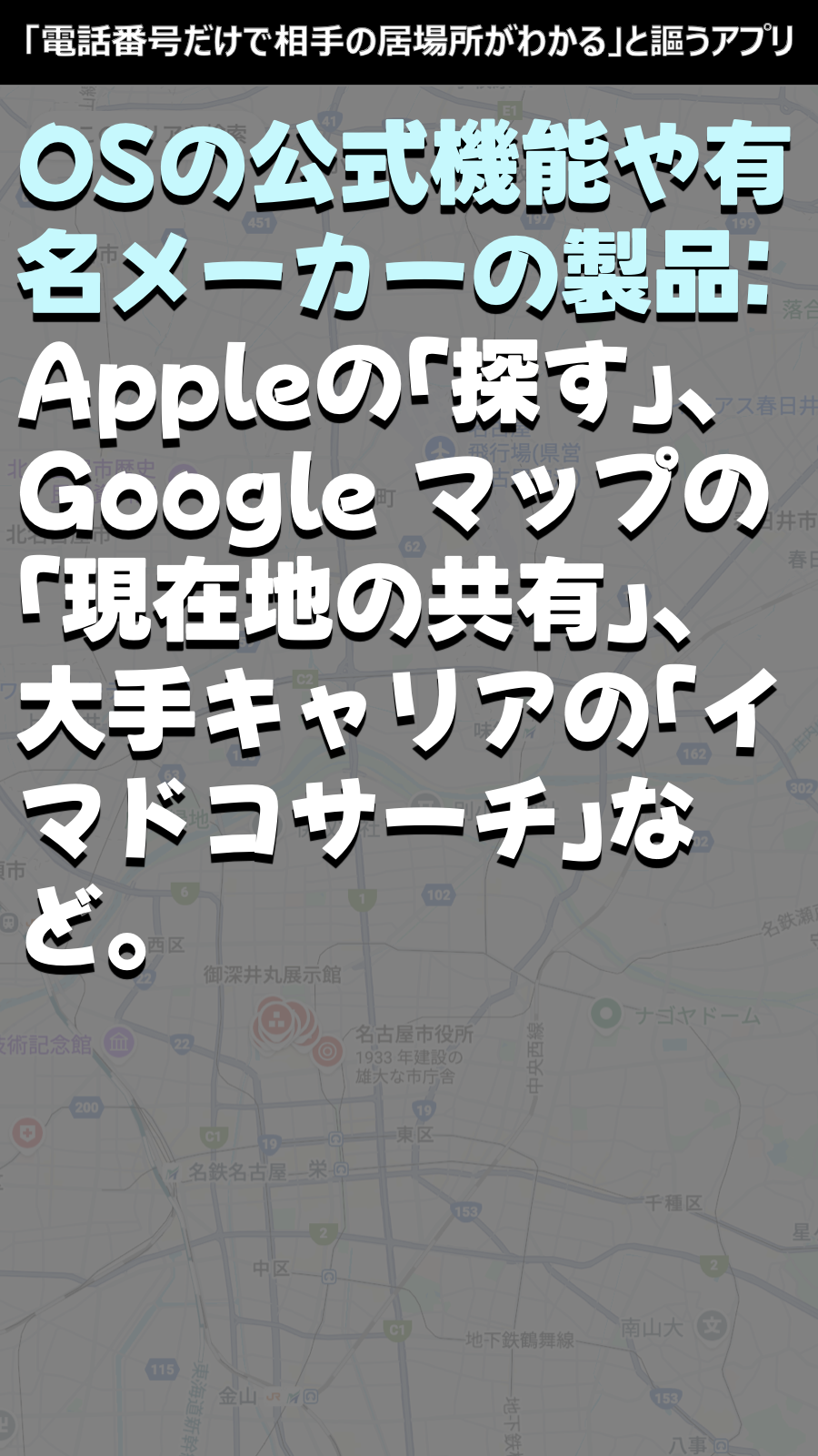 「電話番号だけで相手の居場所がわかる」と謳うアプリ.016