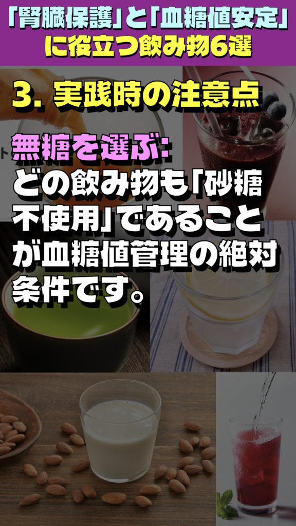 - 無糖を選ぶ: どの飲み物も「砂糖不使用」であることが血糖値管理の絶対条件です。