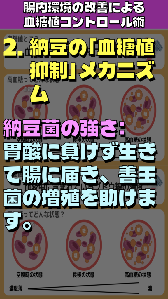 - 納豆菌の強さ: 胃酸に負けず生きて腸に届き、善玉菌の増殖を助けます。