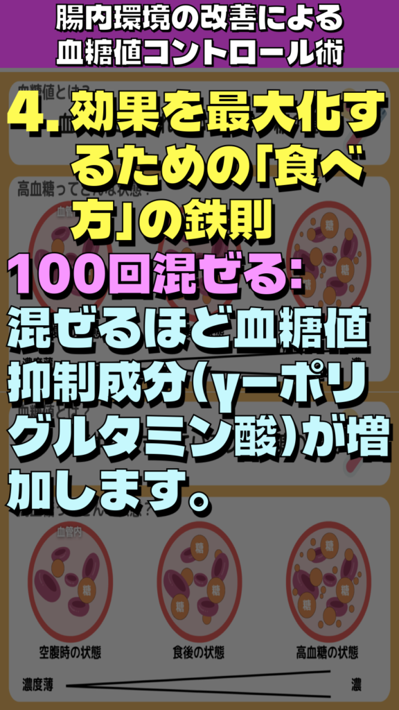 - 100回混ぜる: 混ぜるほど血糖値抑制成分(γ-ポリグルタミン酸)が増加します。