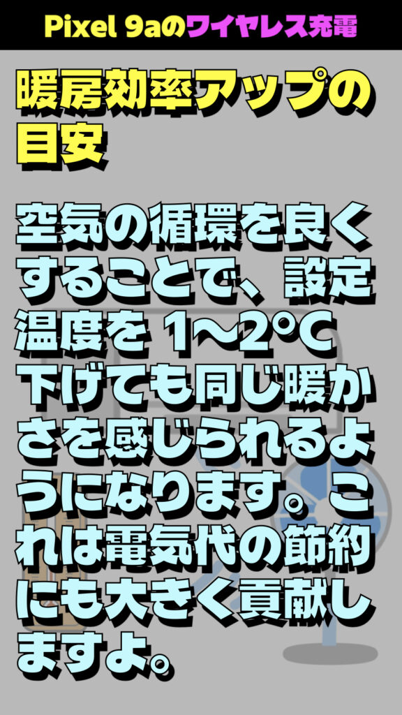 空気の循環を良くすることで、設定温度を 1〜2°C 下げても同じ暖かさを感じられるようになります。これは電気代の節約にも大きく貢献しますよ。