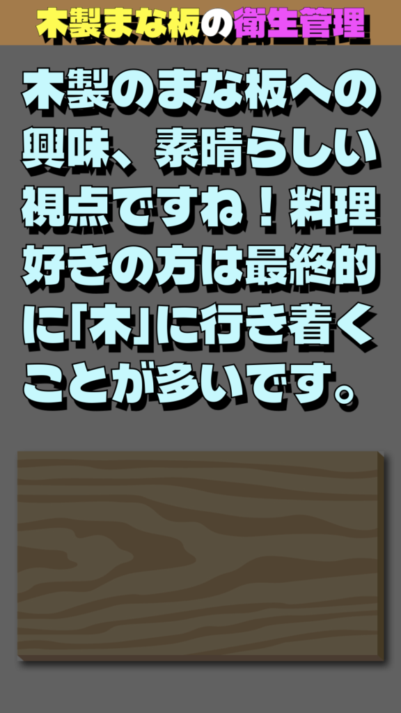 木製のまな板への興味、素晴らしい視点ですね!料理好きの方は最終的に「木」に行き着くことが多いです。