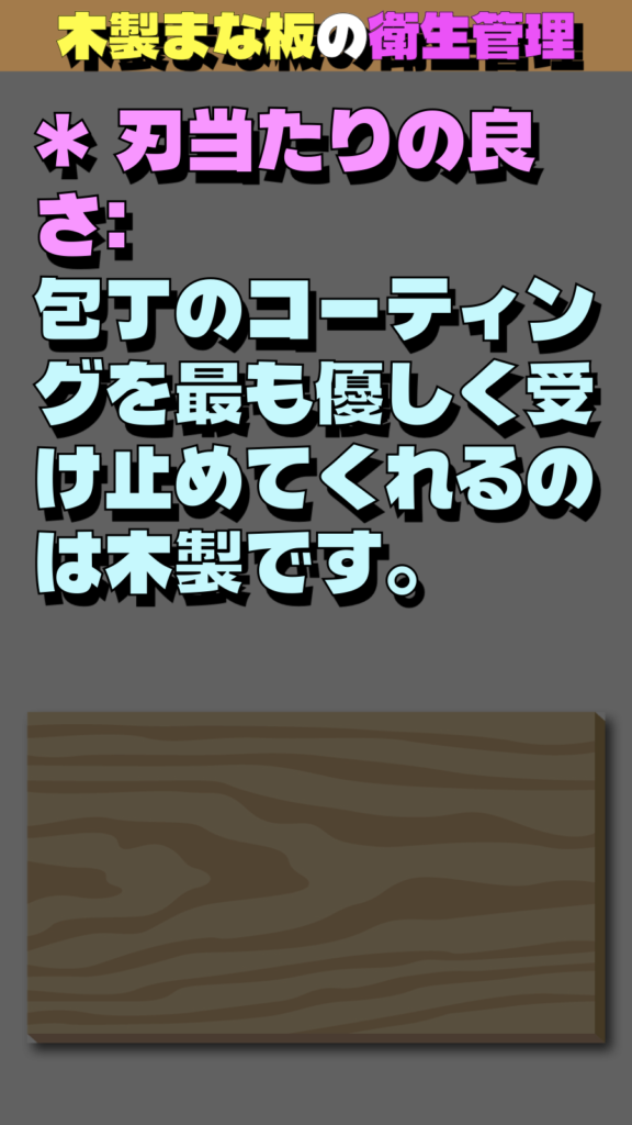* 刃当たりの良さ: ティファールの包丁のコーティングを最も優しく受け止めてくれるのは木製です。