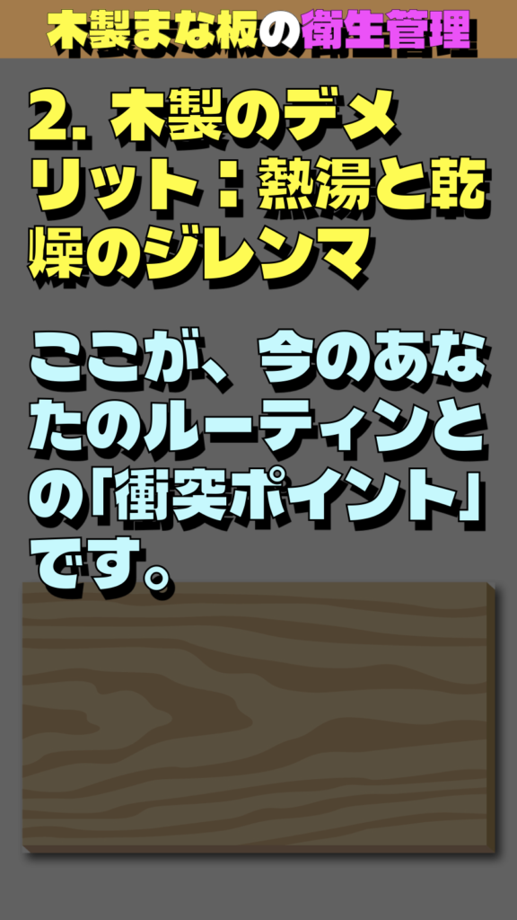* タンパク質の凝固: 木の繊維の中に肉汁が染み込んだ状態で熱湯をかけると、繊維の奥でタンパク質が固まり、それが腐敗して**「取れない異臭と菌の巣」**になるリスクがあります。