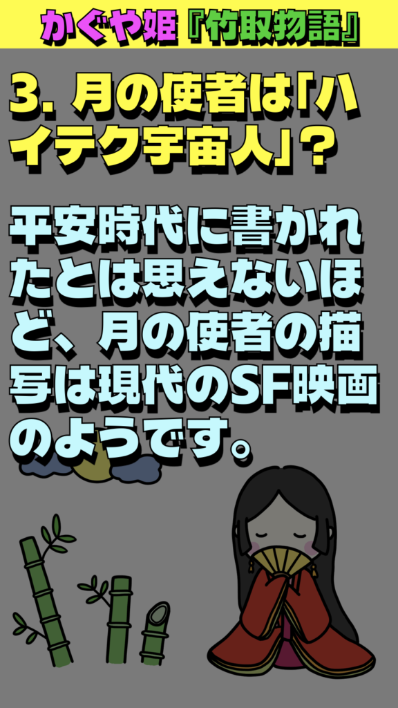 平安時代に書かれたとは思えないほど、月の使者の描写は現代のSF映画のようです。