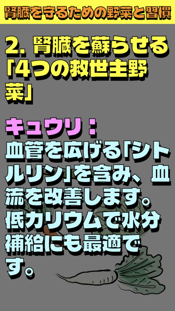 2. 腎臓を蘇らせる「4つの救世主野菜」