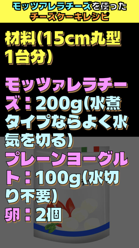 モッツアレラチーズを使ってチーズケーキを作るレシピを教えて下さい