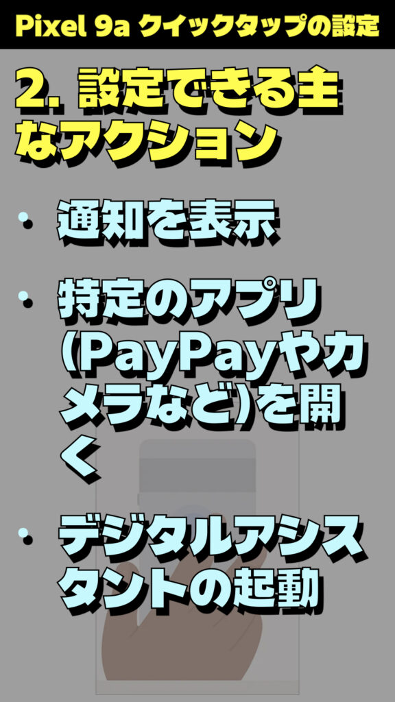 Pixel 9a クイックタップの設定と使い方:資料