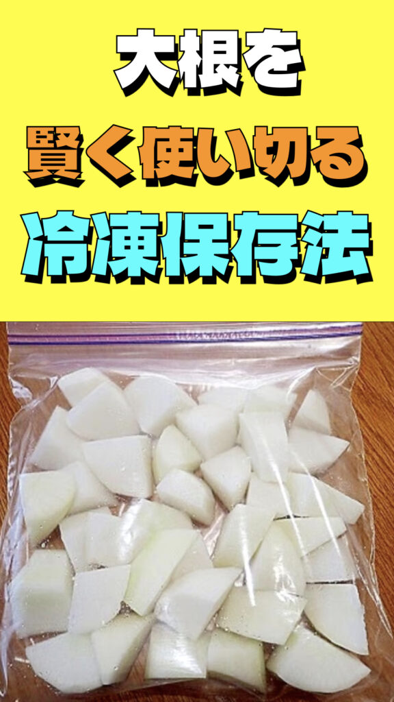 • 方法: 皮をむいて、いちょう切りや厚切りなど使いやすい形にカット。保存袋に入れて空気を抜いて冷凍。