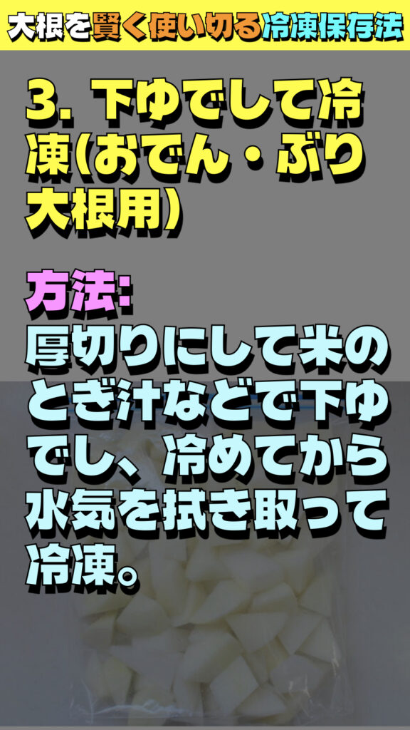 3. 下ゆでして冷凍(おでん・ぶり大根用)