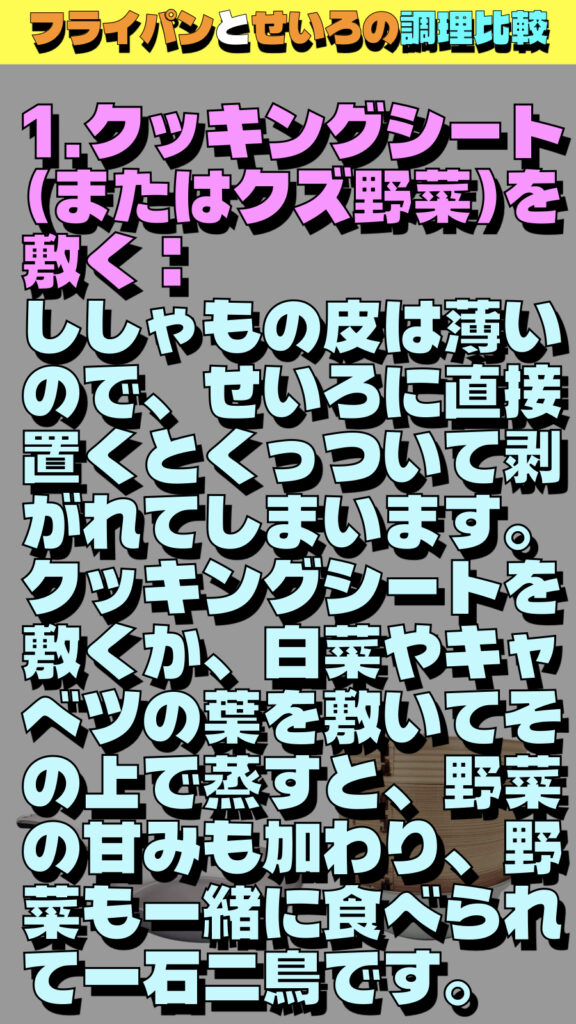 ししゃもをせいろで蒸す際は、以下の工夫をするとさらに美味しくなります。