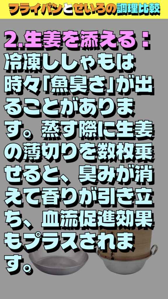 せいろをお持ちなら、ぜひ一度冷凍のまま「生姜を乗せて」蒸してみてください。その「ふっくら感」に感動されるはずです。